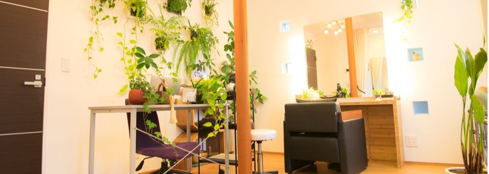 ご来店後すぐにスリッパに履き替えていただいております。まずは足元から解放です。店内にはたくさんの観葉植物、季節や天候に合わせたアーユルヴェーダ的アロマ芳香浴でお迎えしております。リラックスウェアのご用意もございますので是非ご利用ください。